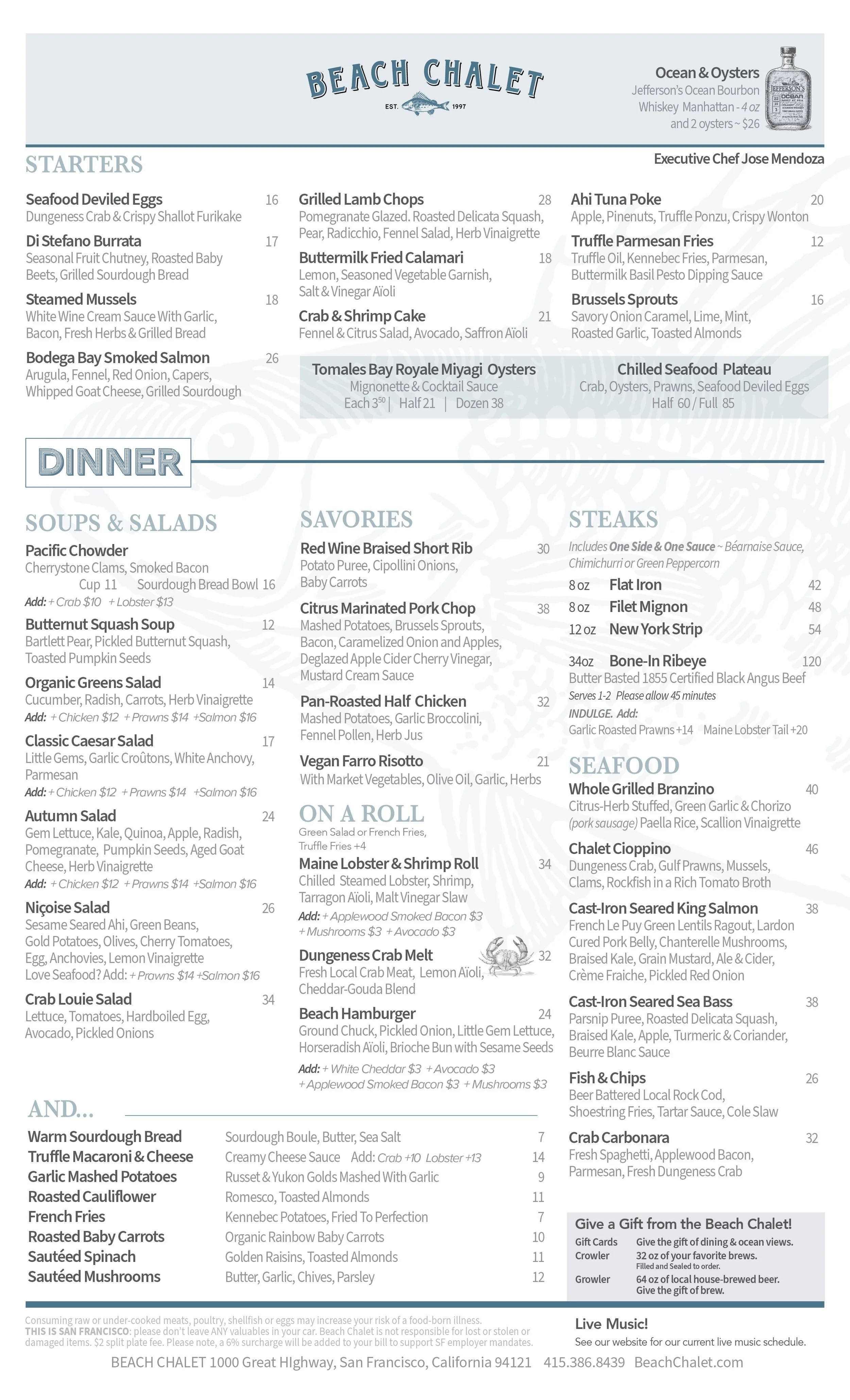 Please Note: Menu items are subject to change based on seasonal availability and supply. Your server will inform you of any updates or substitutions.